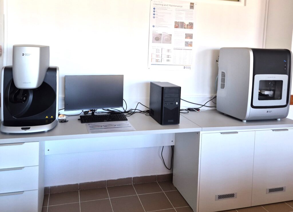 - Laboratorul B313 este destinat realizării lucrărilor protetice prin metodă digitală fiind dotat cu aparatură de ultimă generație- sistemul CAD-CAM. Cu ajutorul acestui sistem se pot face proteze fixe din zirconiu, fațete din disilicat de litiu, proteze mobile printate, gutiere de bruxism, contenție , portamprente individuale.Aparatura este compusă din: scanner de laborator, computer cu programul CAD, mașina de frezat, cuptor sinterizare zirconiu, scanner intraoral, 4 imprimante 3D cu rășină fotopolimerizabilă pentru confecționarea modelelor dentare.